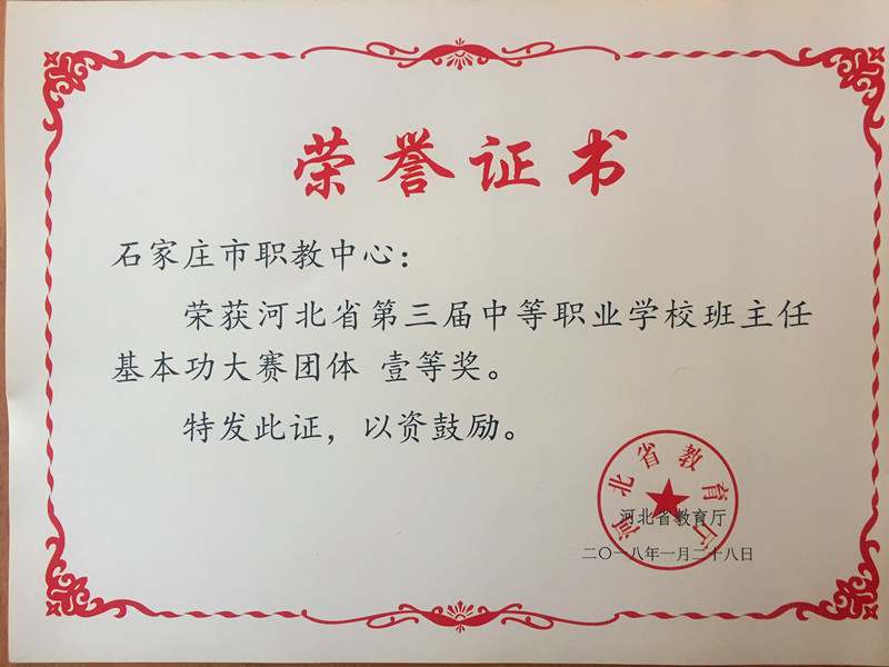 日前,在河北省第三届中等职业学校班主任基本功大赛上,石家庄市职业技术教育中心喜获团体一等奖,冯娟、宋辰辉获个人一等奖,尹慧青、王潇获个人二等奖,赵海星、杨晓琳、马丽辉、石锐获个人三等奖。至此,在前三届河北省中等职业学校班主任基本功大赛中,我校共获得2个团体一等奖、1个二等奖,5个个人一等奖、5个二等奖和7个三等奖。