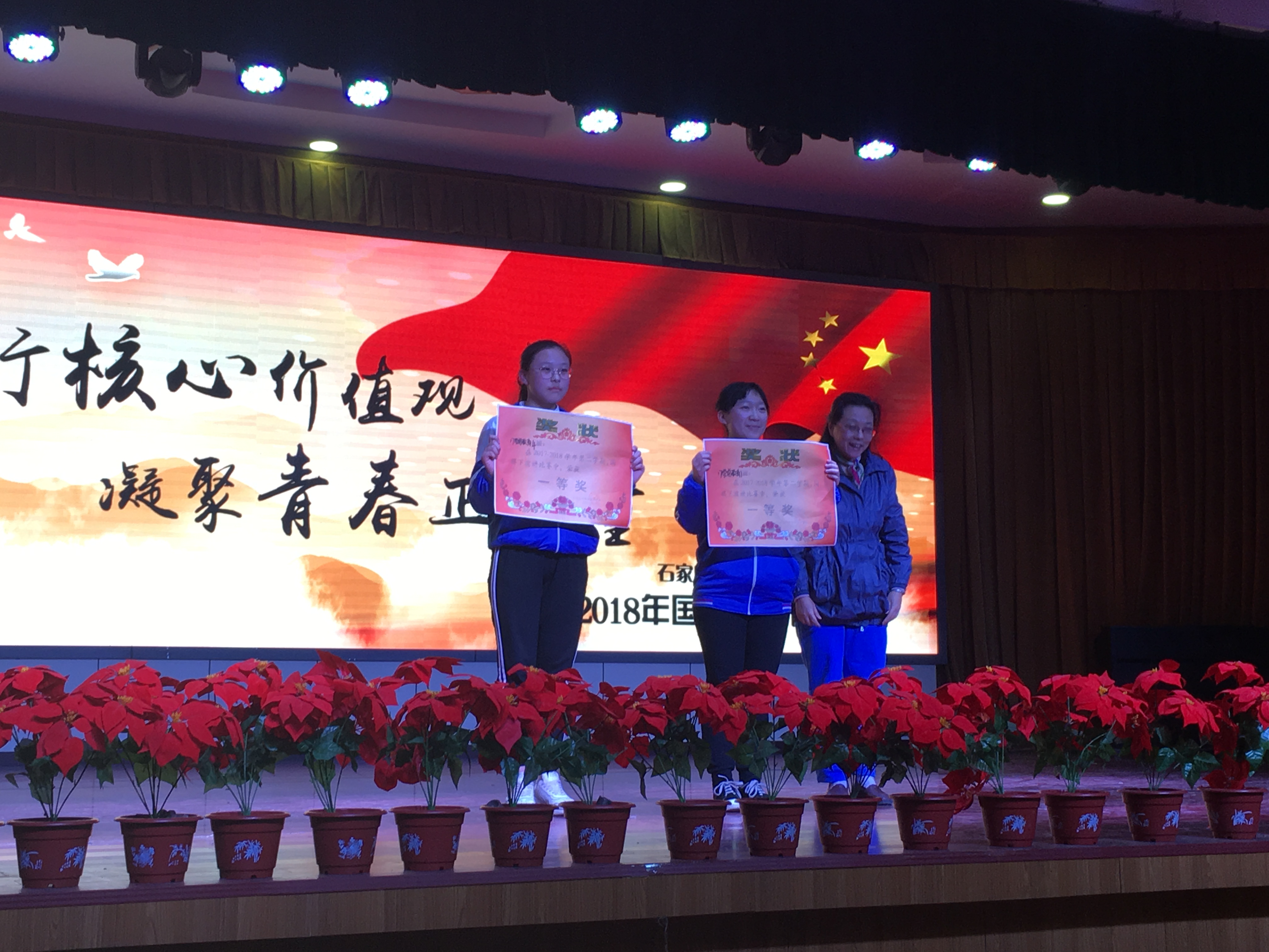 比赛结束,主持人宣读获奖班级名单:2017学前教育1班、2017学前教育4班荣获一等奖,2017网络2班、17学前3班、17电商1班获得二等奖,17网络1班、17应电1班、17多媒体2班获得三等奖,17数控3班、17学前2班、17多媒体1班、17中德国际获得优秀奖,最后与会领导为获奖选手颁奖。