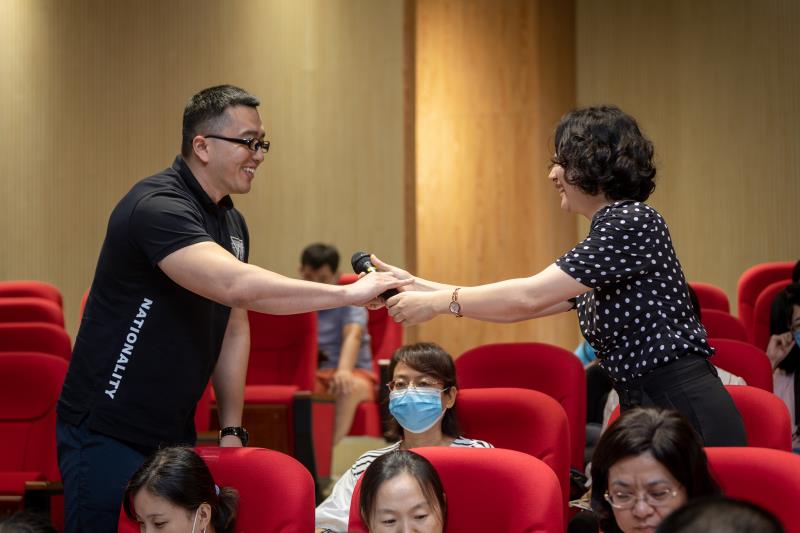 第二部分是由李飞主任主讲的《如何创新学生活动促进班级建设》,李主任一开场就采用互动的方式,极大地吸引了大家的听讲热情,他从学生活动策划开始,阐述了策划的主题背景、内容、情节等。李主任语言生动,声情并茂,台上台下不辞辛苦,倾情讲述着班级建设中的故事和经验。大家听得津津有味,时而潸然,时而欢笑,时而激愤,时而沉思。