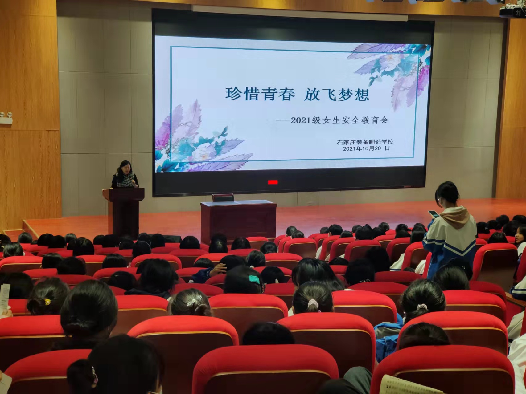 10月20日,石家庄装备制造学校“阳光心社”周婉婷老师在8号楼报告厅为2021级女生和学校内地西藏中职班全体女同学做了一场题为“珍惜青春,放飞梦想”的讲座。本次活动由教育处组织,校团委书记顾宁参加了活动。