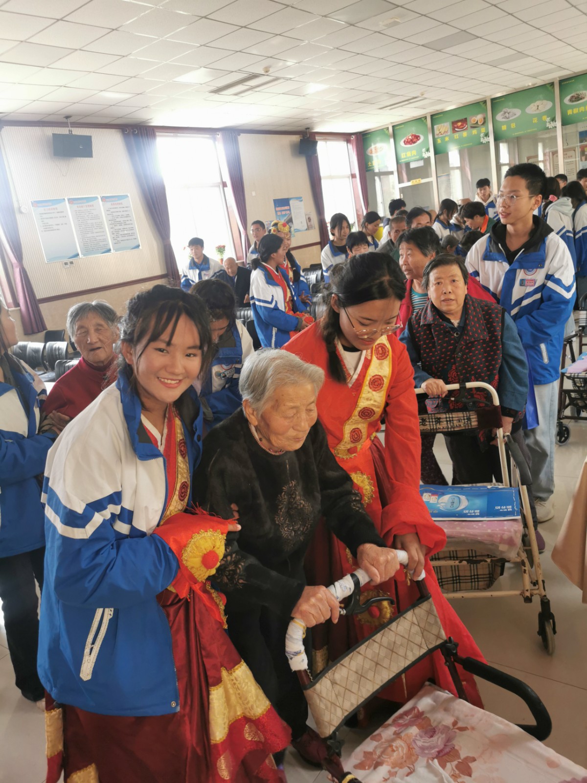 2023年10月23日,恰逢重阳节,石家庄装备制造学校苗红玉副校长带领善行大队和学校内地西藏班部分学生一行40多人来到正定塔屯敬老院,为老人们送去一份温暖和关爱。