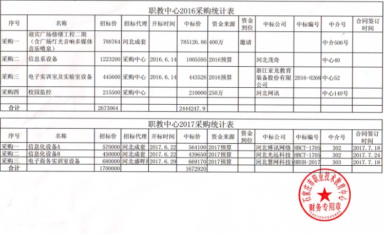 > 佐证2:2016、2017信息化设备采购总统计清单