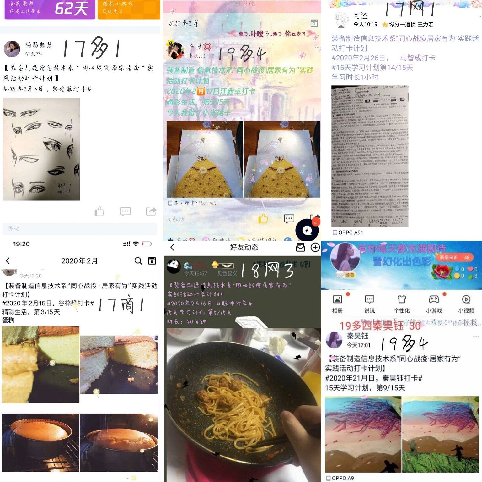 本次活动第一期自2020年2月13日开始至2月28日结束,为期十五天。分为学习、读书、生活以及运动四个板块,学生们根据自身喜好参加打卡活动,并且每人有一次补卡机会。活动过程中需要按要求将自己的成果、收获分享到QQ空间并将截图发给本班学委,再由系学习部成员进行收集、整理、统计。本次活动受到信息技术系同学们的热烈响应,共有440名学生积极参与。在活动过程中,同学们按时起床、上课、休息,保持了良好的生活节奏,在停课不停学的同时,还坚持打卡。不仅劳逸结合、提升自身,更促进了同学之间互相督促、共同进步。最终,有46名同学分别获得"学习之星″"读书之星""生活之星″"运动之星″的称号。