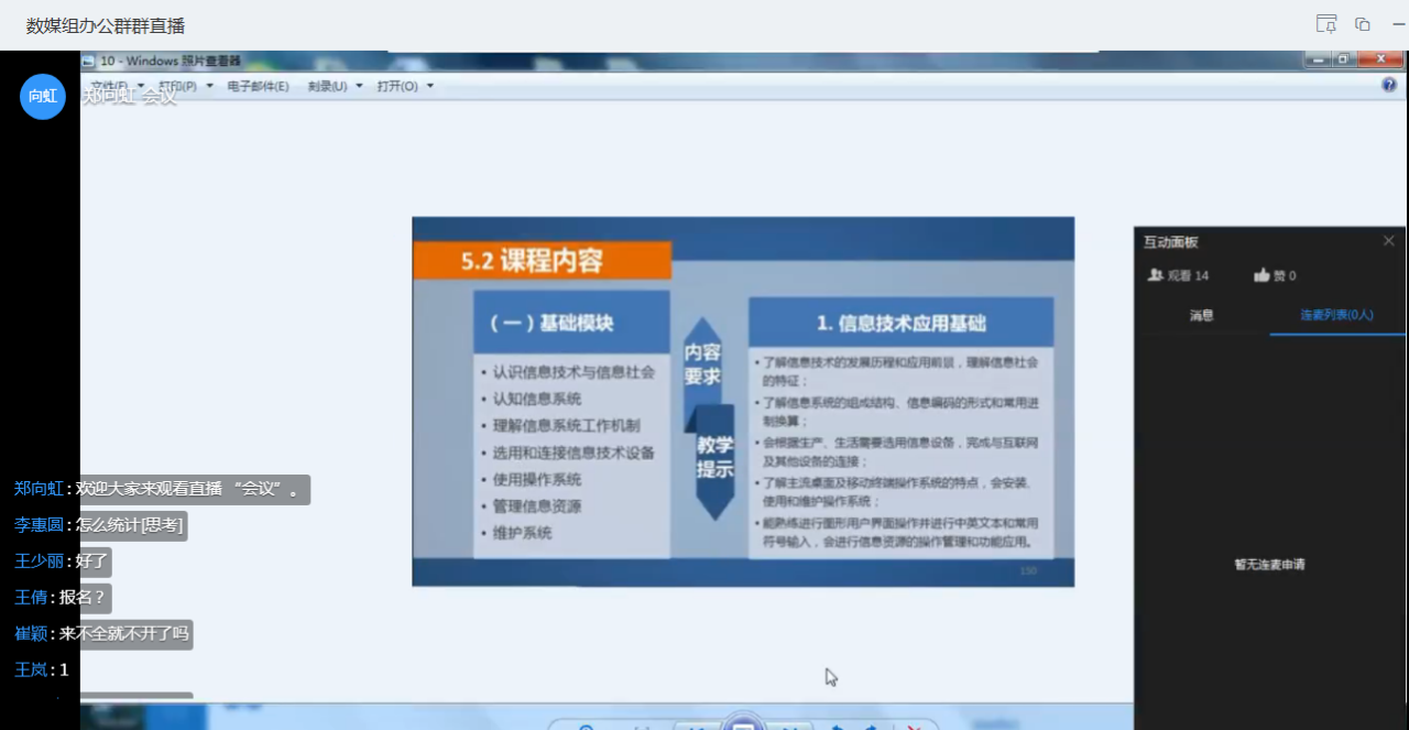 在抗击疫情的特殊时期,为了落实石家庄市教育局对学校 “停课不停学”的有关要求和《中等职业学校信息技术课程标准》,深化中等职业学校公共基础课程改革,2020年4月1日,石家庄装备制造学校信息技术系数字媒体技术应用教研组开展了一次线上教研活动。