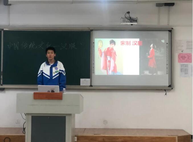 首先郭义洋同学为大家介绍汉服文化各个历史朝代的形态变迁和特点,让同学们意识到汉服是中国“衣冠上国”、“礼仪之邦”、“锦绣中华”的体现。