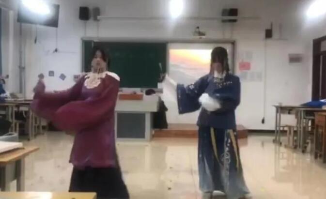 接下来郭淼鑫垚、何雨琪、孙瑞晓、孟雪佳、杨皓月、周怡彤、高博、赵欣然等8位同学带来了精彩的汉服展示和舞蹈表演,让同学们体会到汉服之美。汉服“上承周汉,下取唐宋”,女子服饰花冠裙袄,大袖圆领更有“霞帔”加持,美不胜收。最后,由班主任王倩老师对本次班会进行了点评。