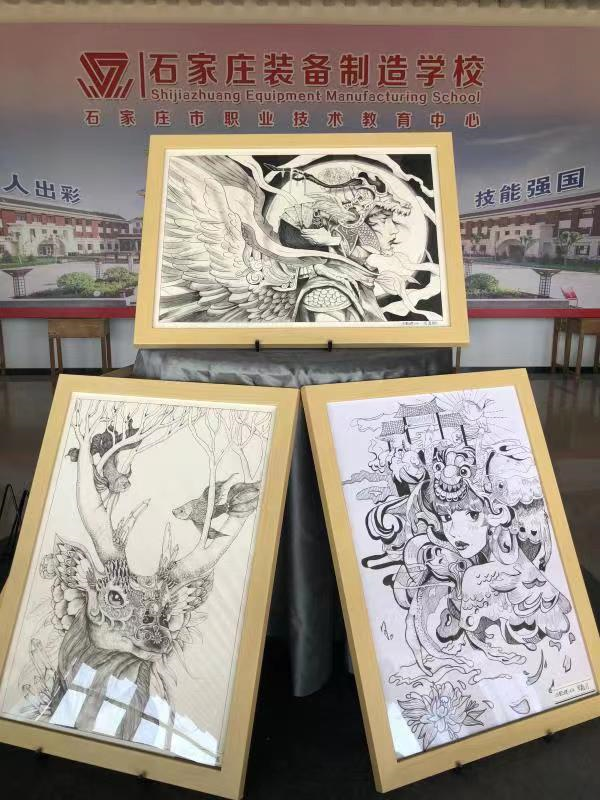 数字媒体专业学生积极投入到职教周活动中,人人参与,将所学绘画技能完美的展现在一副副精美的黑白装饰画作品中。此次同学们创作作品的过程是一次追求极致的过程,是对工匠精神的致敬。