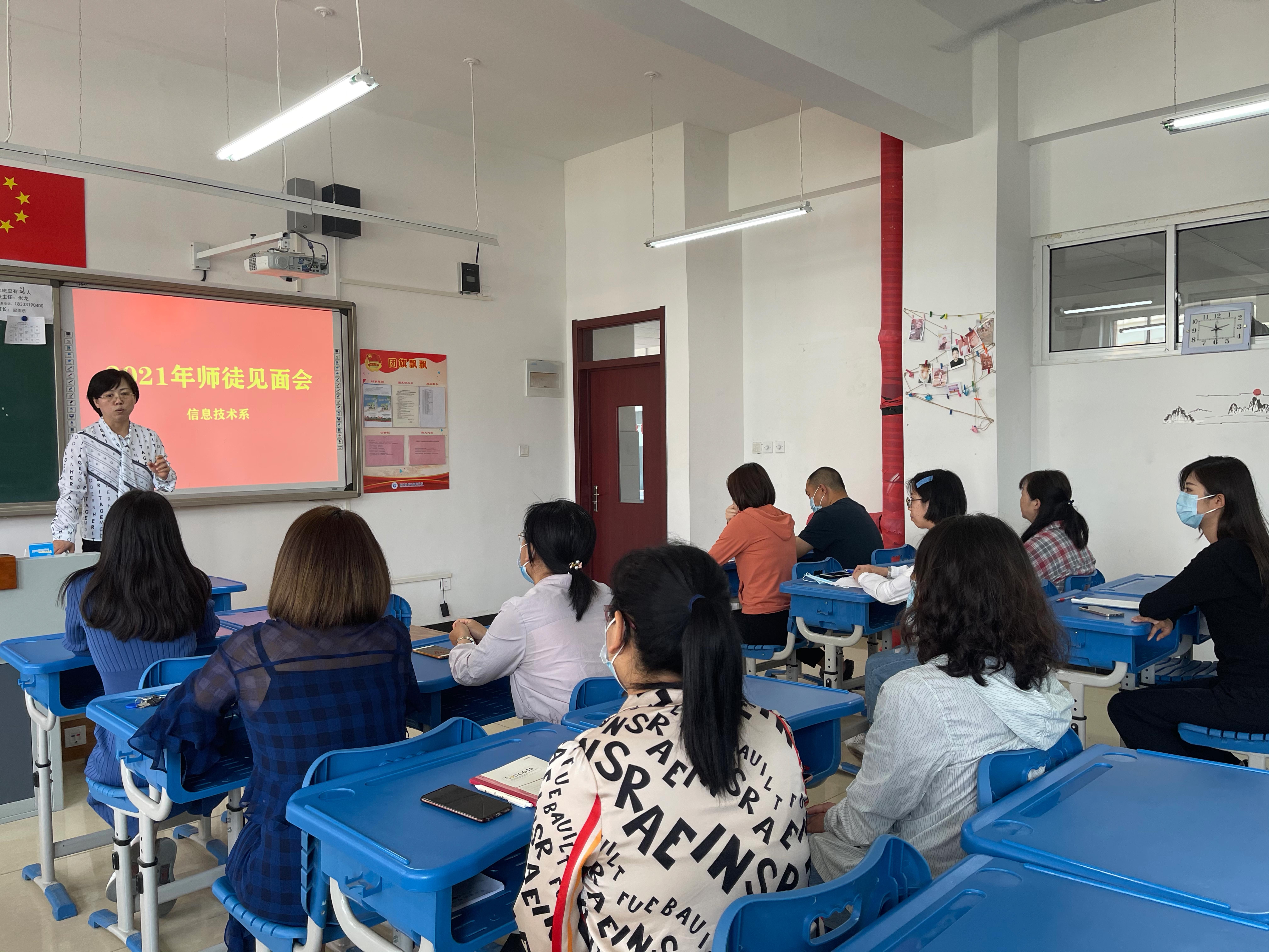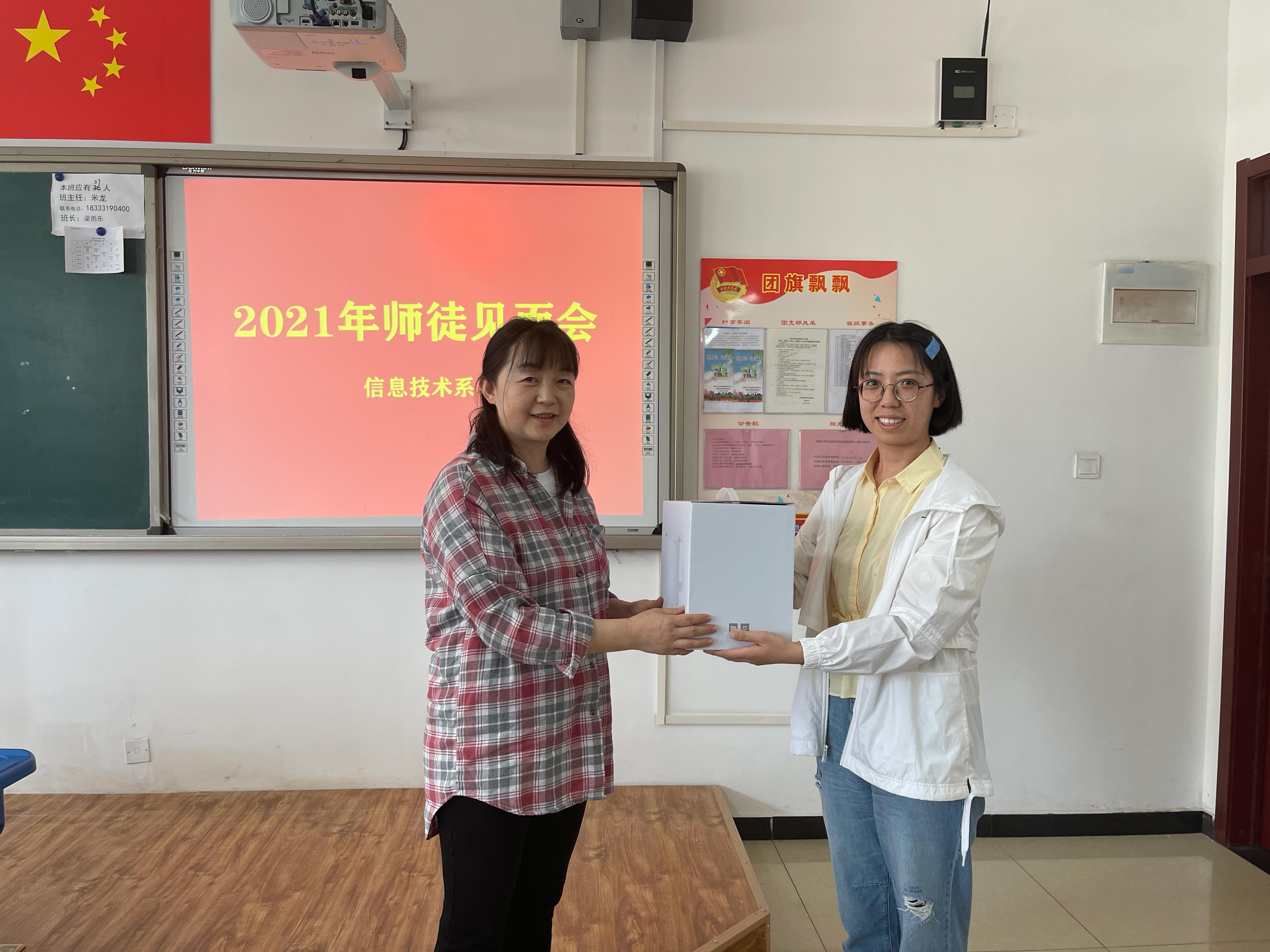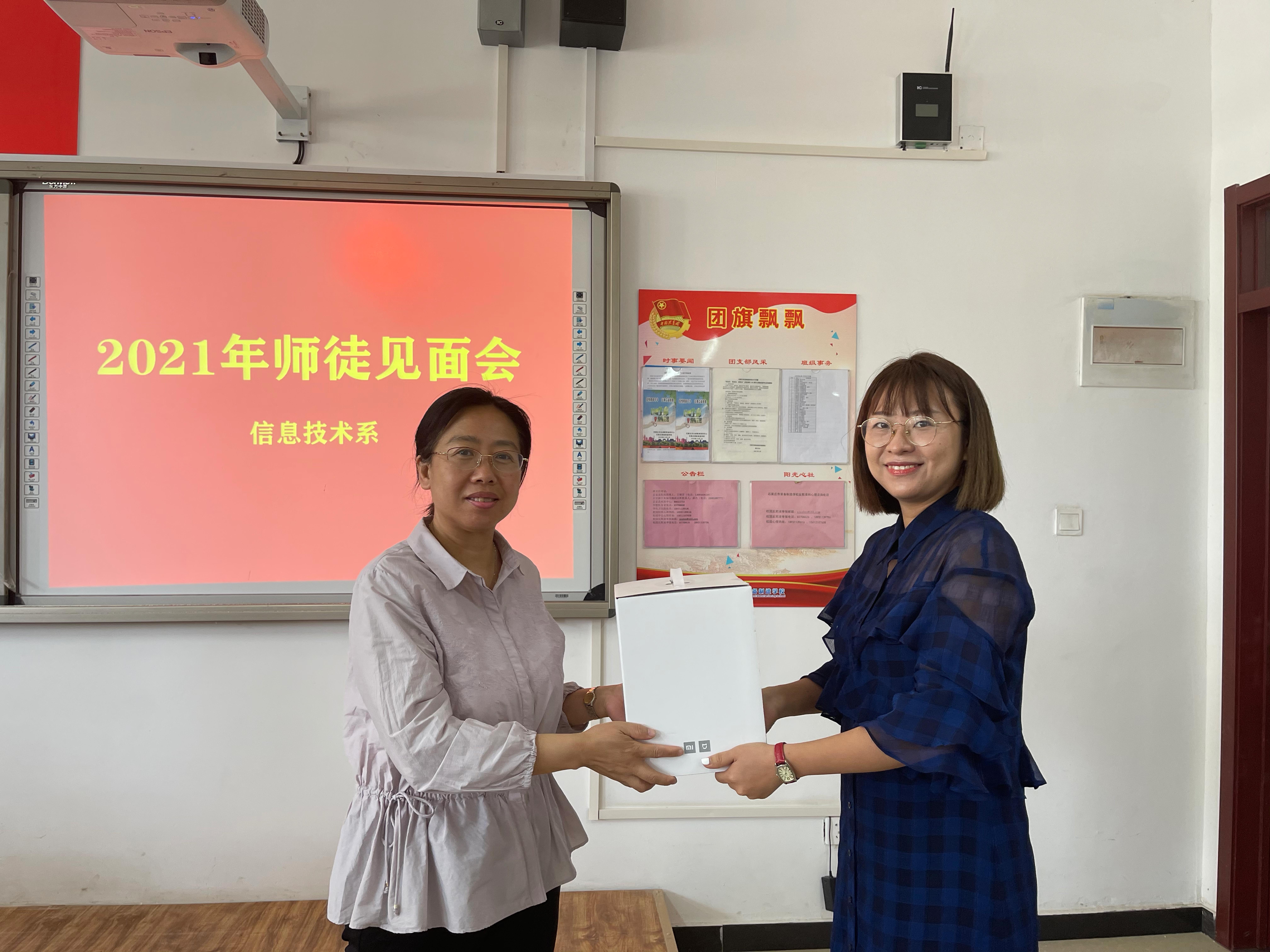 为提高青年教师教育教学能力,适应职业学校教学管理特色,提升师资队伍水平,信息技术系于5月21日在5号楼238室召开拜师仪式,并对2021年新增教师开展“青蓝计划”培训,对青年教师的成长寄予厚望。培训的青年教师包括4名新入编老师:刘翌博、李晓静、张向、尚莹,两名外聘教师:孙培耘、吴雨侬。