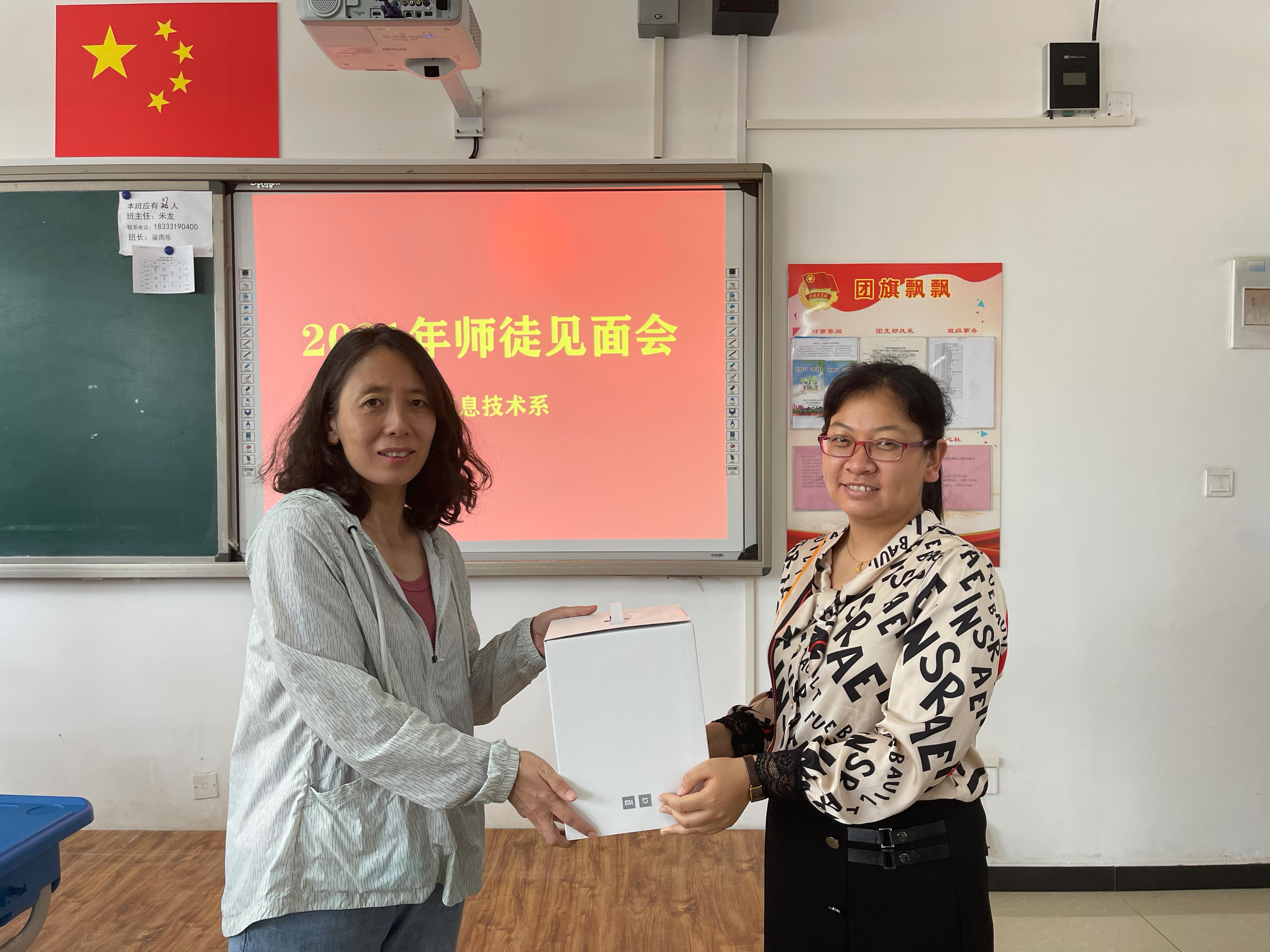 信息技术系主任赵丽英根据青年教师的专业发展方向,为每一位青年教师安排了合适的师傅,吴雨侬,李晓静两位老师的师傅为赵丽英主任和王庚副主任,专业指导方向为数媒专业(公共艺术)和(摄影与摄像)方向,刘翌愽老师的师傅为杨建梅老师,专业指导为电商专业(市场营销)方向,张向和尚莹老师的师傅为杨雪梅和郑向虹两位经验丰富的老师,她们分别指导方向为美术和图形图像,孙培耘老师的师傅为黄琨老师,专业指导方向为网络专业(1+X证书)方向,郑瑞峰老师的师傅为同专业的王岩老师。