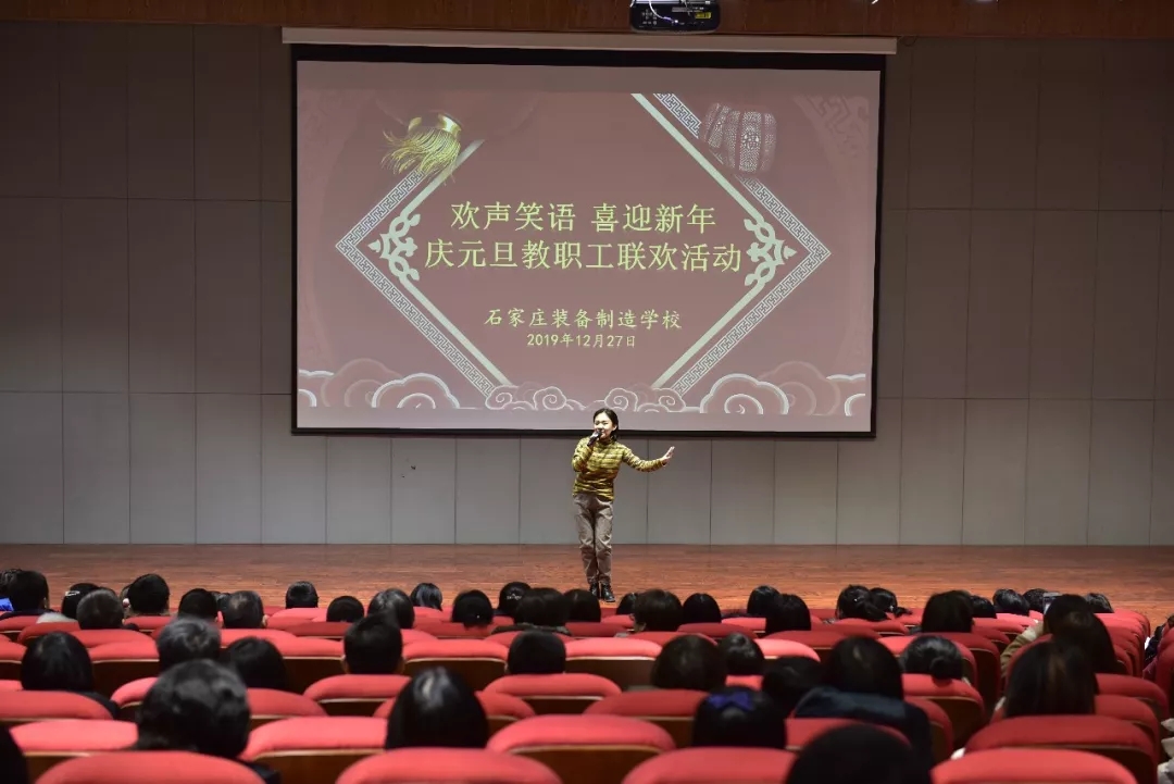 2019年12月27日下午,石家庄装备制造学校全体教职工欢聚一堂,由工会组织 “欢乐 祥和 团结 进取”为主题的2020年元旦联欢会在阶梯教室举行。