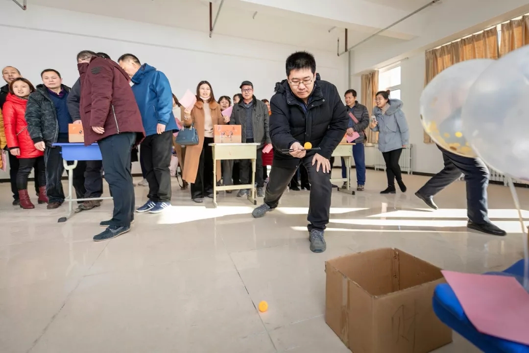 会后,以工会小组为单位准备的“套圈” “吹蜡烛”“金豆搬家” “一箭穿心” “飞镖” “瓶中倒水” “喊数抱团”“趣味踢毽比赛”等节目精彩开锣。老师们兴高采烈地参加各项活动,欢呼、叫好声连绵不断。