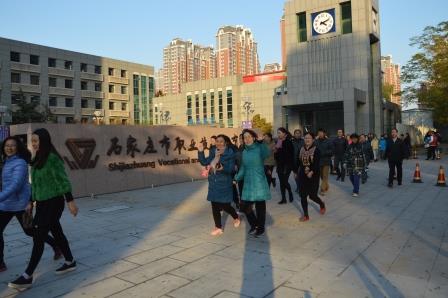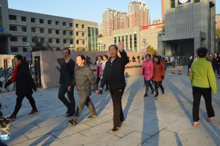 浩浩荡荡的队伍,穿过新石中路,走过城角街,横穿新石北路,沿友谊大街南行,转回新石中路。一路上队伍拖长了,拉散了,又汇合了,聚齐了,最后欢聚在操场,健步走活动圆满完成。